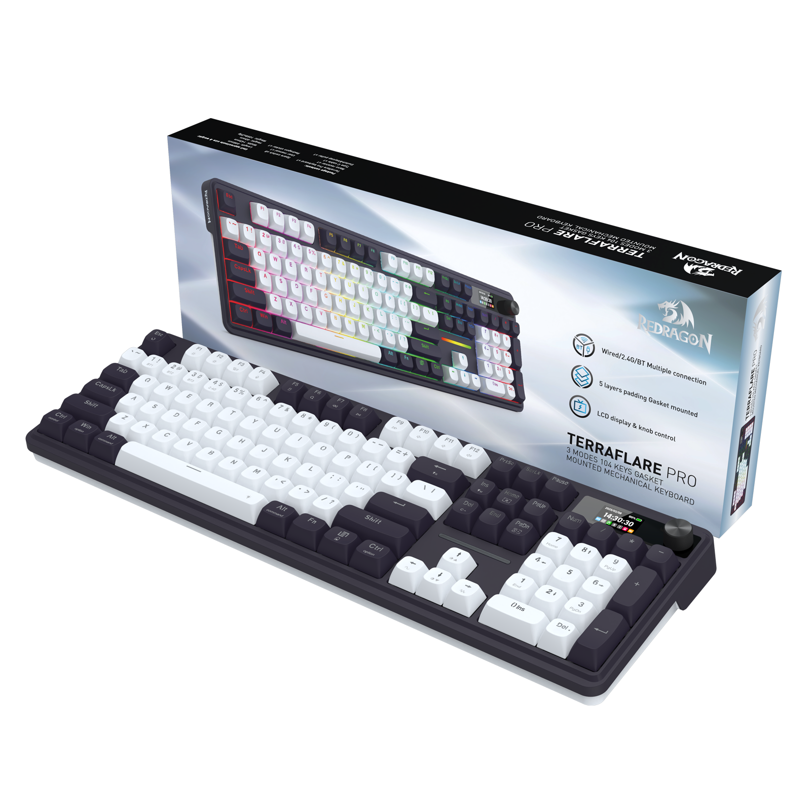 Redragon K762WB-RGB-PRO 3-Modes 104 Gasket Mechanical Keyboard with LCD Display